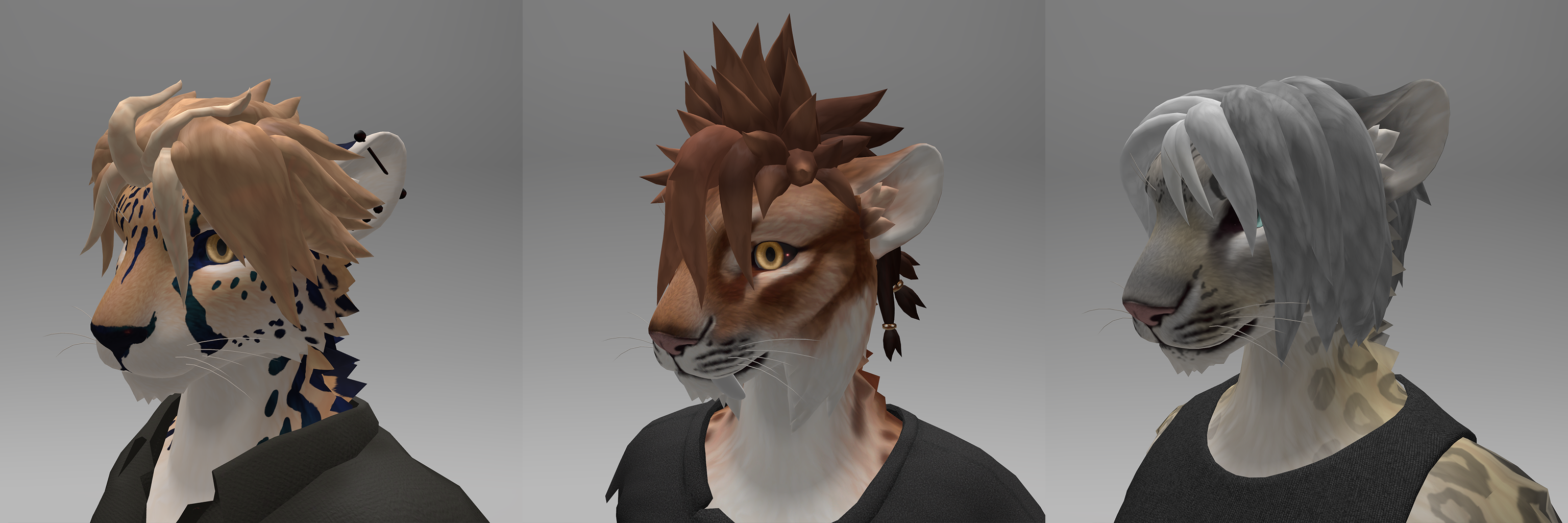 These hair assets are designed to accomodate larger ears. This to stop the hair clipping through the ears. The hair was modelled based upon the RoverCat hair and ear position, but can be used on any furry avatar that fits!